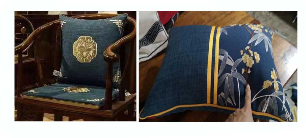 There are many people in the UK who bought Chinese Rosewood furniture back with them from the far east- or indeed ordered it online for its quality and finish, including many with Dining Table and Chair sets. Over time - the chair cushion foam will become inflexible, and lead to flat, uncomfortable cushions. We have the solution. We have been dealing in Chinese Rosewood Furniture with a trusted supplier since 1993 and have built a bond with our supplier. We are now pleased to say we can supply Silk and Fabric cushions - tailored to suit any chairs - from a huge range of fabrics - and then sent direct to your home via Airmail. All are made bespoke to fit your own chairs and are fully piped around the edges - with velcro straps to facilitate easy fitting and removal of the cushions to any chinese dining chairs. By using our simple to use templates - we will ensure your cushions are a perfect fit. All of our cushions are made with CHMR foam ( fire retardent ) to comply with UK furniture laws.